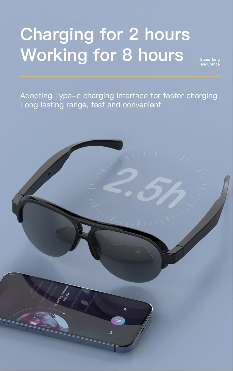 Smart Sunglasses Bluetooth Glasses V5.3 HIFI Headphones with Built in Mic for Outdoor Sports Running Anti-touch UV For Men Women
