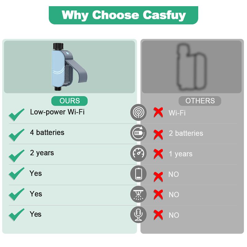 Made to save every drop, our timer lasts up to 630 days (based on 5 cycles/day in lab conditions) — enjoy watering that just works. Rain or shine, home or away-your garden stays perfectly watered , no constant battery swaps needed.