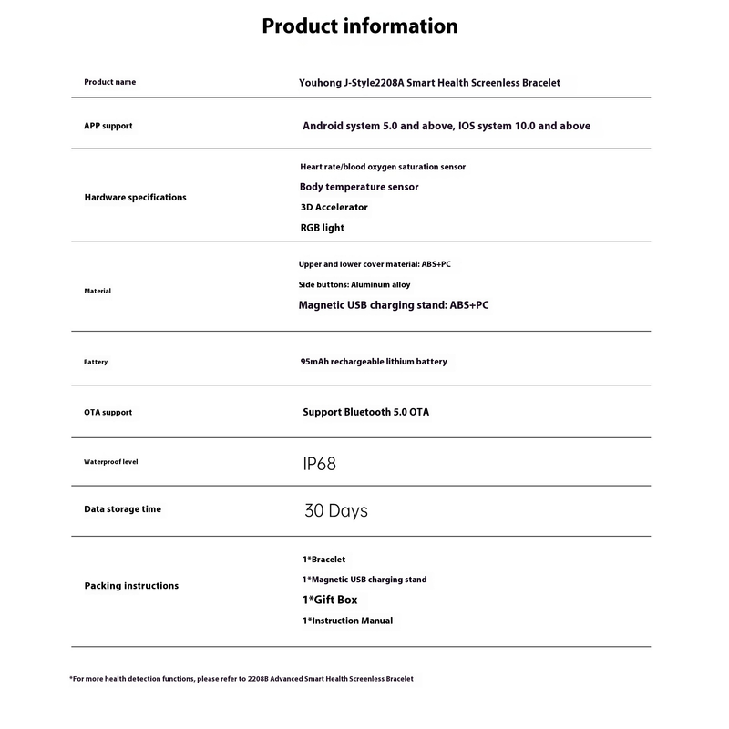 1 * Bracelet 1 * Magnetic USB charging dock 1 * Gift box 1 * User manual