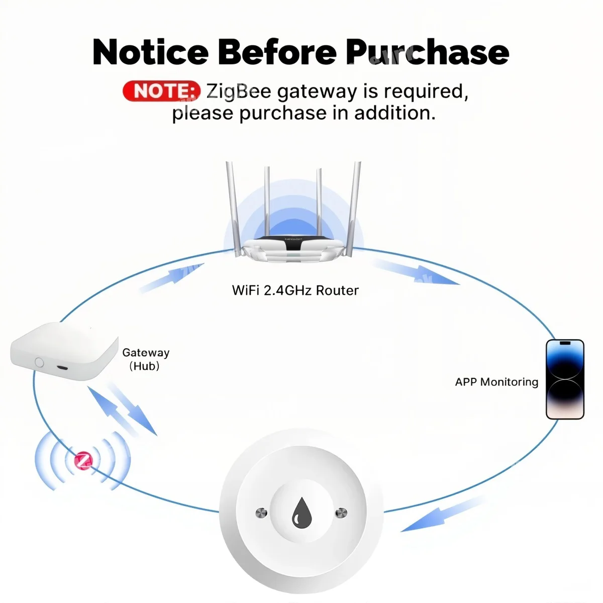 The ZigBee smart water sensor leverages advanced technology to detect even the smallest leakage, providing early warning of potential floods and saving you from costly damages.