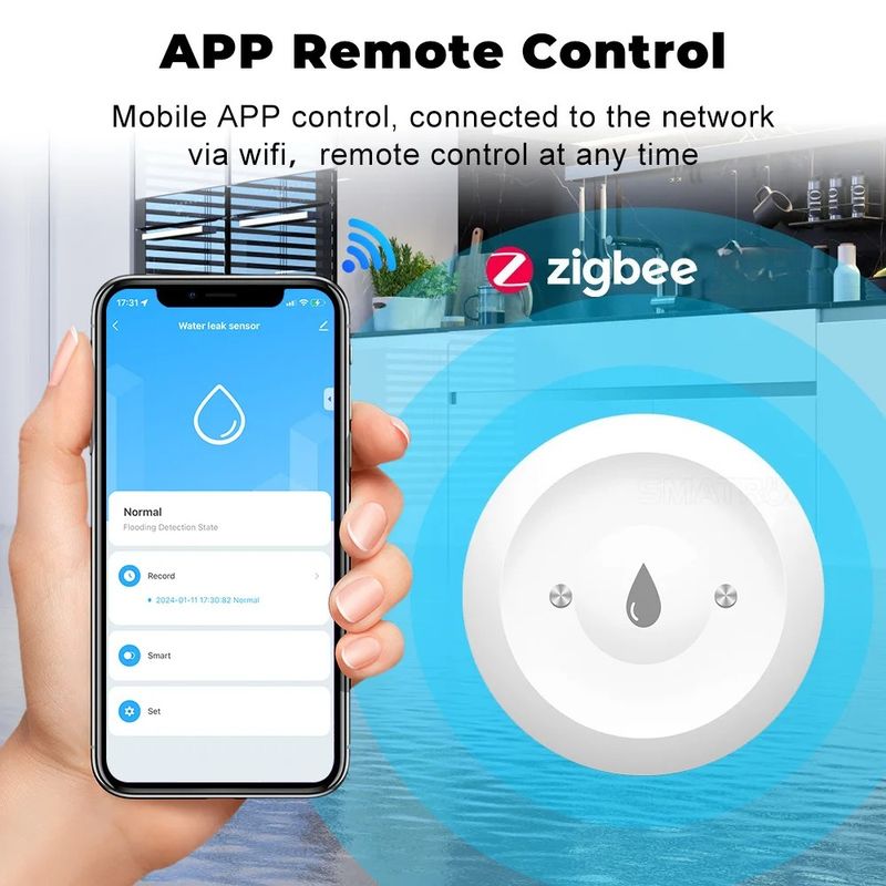 Smart Zigbee Water Sensor Flood Water Leakage Detector App Remote Monitoring Support Home Assistant Zigbee2mqtt