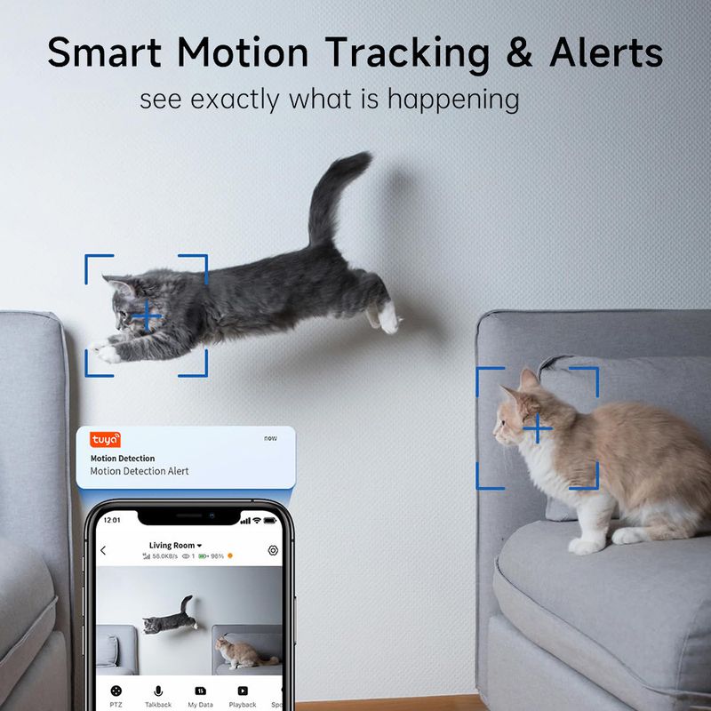 With this 2MP/5MP/8MP pan and tilt camera, you can remotely talk and listen to your kids, your home and your pets with Tuya Smart app or Smart Life app.