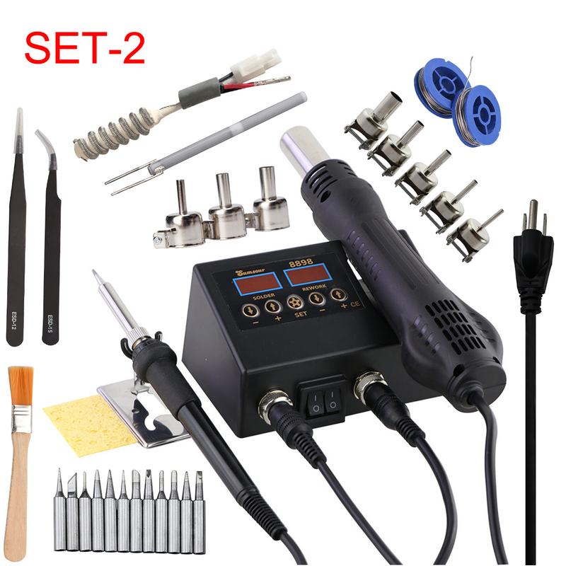 SMD Soldering Iron Hot Air 2 in 1 BGA Rework Solder Station Heat Gun Desoldering Repair For Cell-phone PCB IC Welding Tools Kit