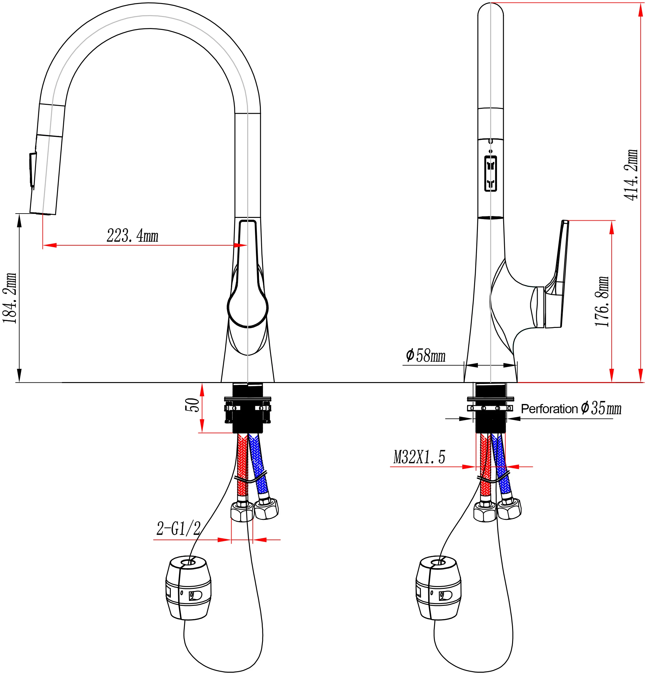 If you buy the faucet contains hoses, hose specification for 1/2” by default,standard size.
