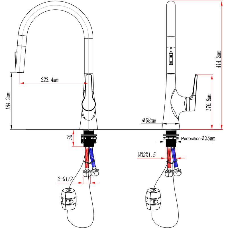 If you buy the faucet contains hoses, hose specification for 1/2” by default,standard size.