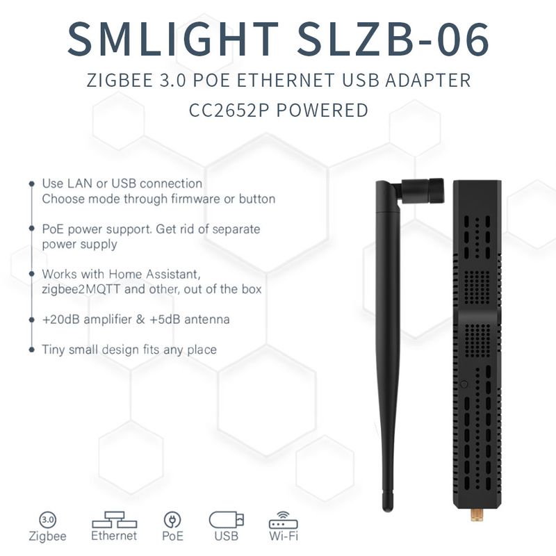 · SLZB-06 designed to work with Zigbee2MQTT or ZHA integration for Home Assistant.
