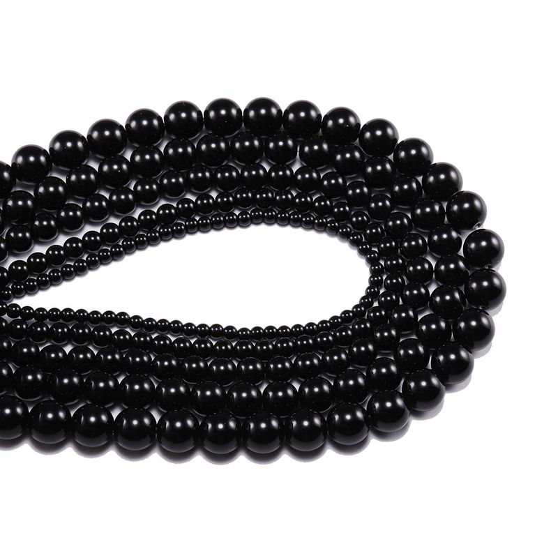 Smooth Black Agates Natural Stone Beads For Jewelry Making Round Onyx Loose Beads 6 8 10 12mm Diy Bracelet Necklace 15inches