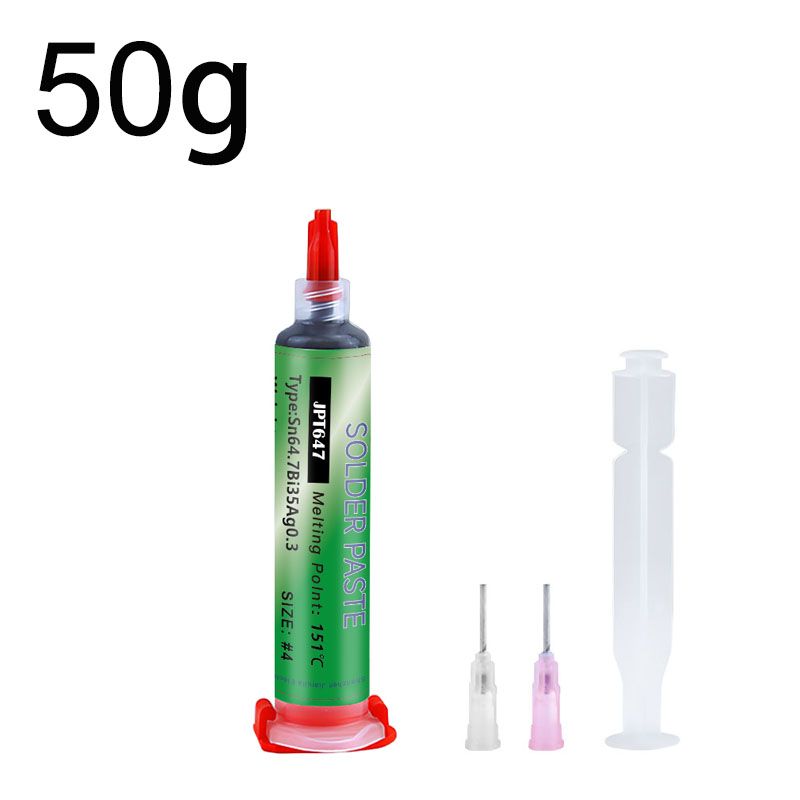 1.No Clean Flux With Excellent Fluidity, Lead-Free, Non-Corrosive, In Compliance With RoHS Standards.The paste is gray in color with moderate viscosity and cures quickly after welding to form a protective film.Sn64.7Bi35Ag0.3 Flux Is Suitable For Household Appliance Repair Soldering