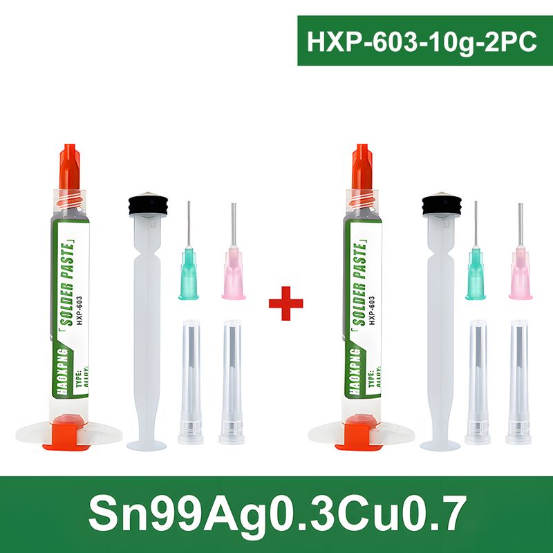 Syringe design, easy to use, easy to weld, weld joints full of bright not false welding, widely used in component welding repair. Comes with its own flux for easy soldering and is an indispensable soldering supply for the soldering studio.
