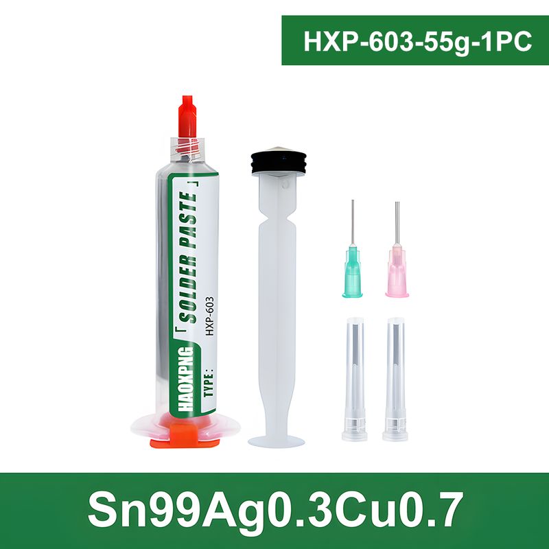 Syringe design, easy to use, easy to weld, weld joints full of bright not false welding, widely used in component welding repair. Comes with its own flux for easy soldering and is an indispensable soldering supply for the soldering studio.