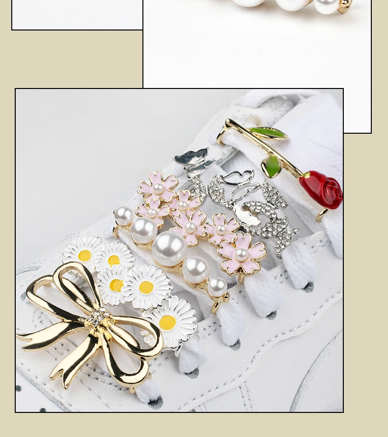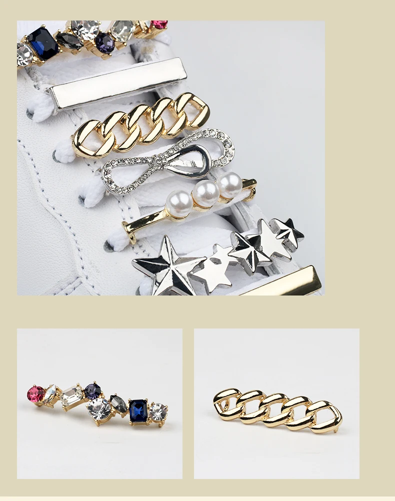 Sneakers Shoelaces Decoration Metal Shoelace Buckle Pearl Shoes Charm Accessories Shiny Rhinestones Women Shoe laces Decorative
