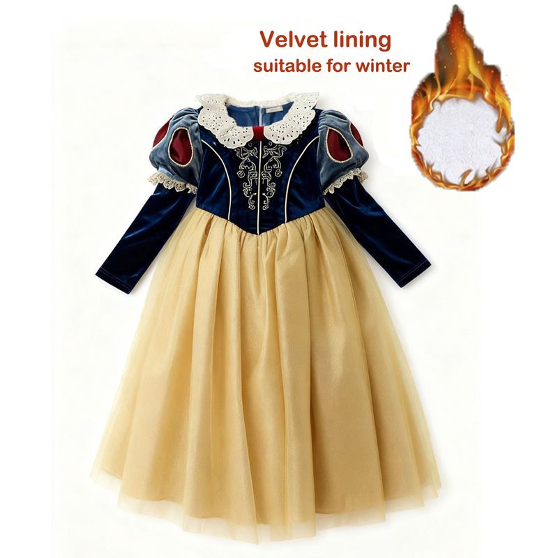 Snow White Children's Dress Girls Blue Princess Velvet Dresses Elsa Frozen Cosplay Winter Dress for Kids Party Gown 3-12Years