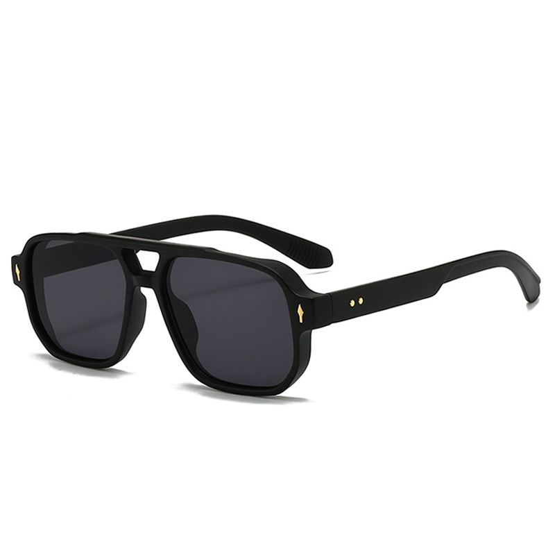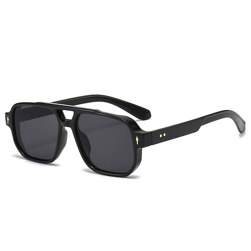 SO&EI Vintage Double Bridges Men Square Sunglasses Fashion Clear Ocean Lens Eyewear Women Trending Rivets Sun Glasses UV400