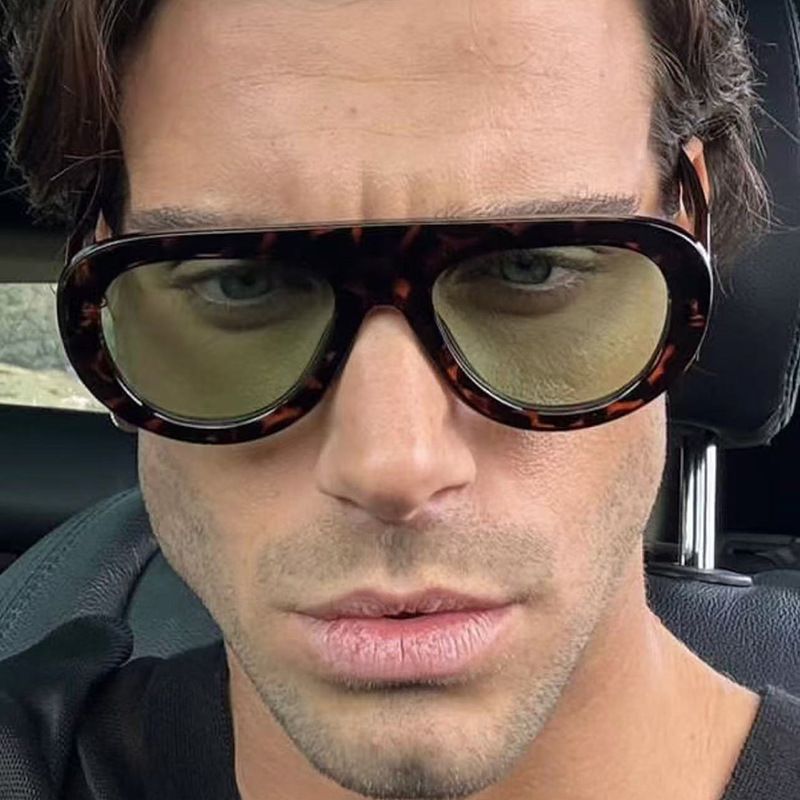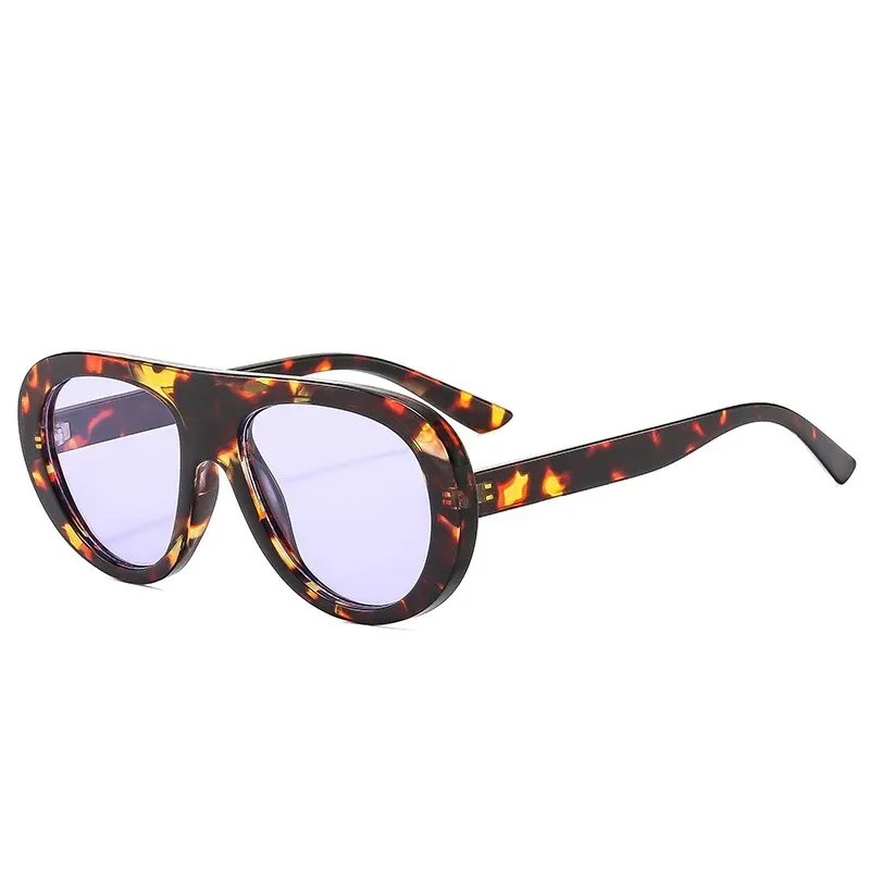 SO&EI Vintage Pilot Men Candy Color Sunglasses Fashion Leopard Shades UV400 Women Trending Punk Sun Glasses