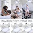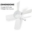 Dimensions and Features: This white ceiling fan product dimensions are 15.4 x 15.4 x 4.92" from blade tip to blade tip and weighs a compact 1 pound and 4 ounces. The ceiling fan with light is screwable into any light socket and includes a socket extender, allowing you to simply install and remove the fan whenever and wherever you desire.