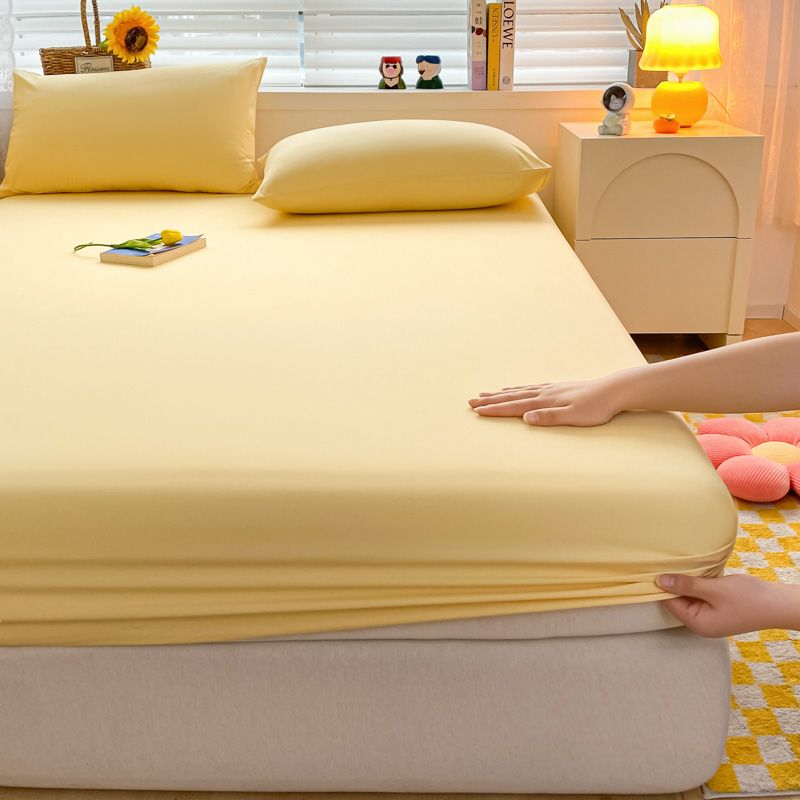 Soft Cotton Fitted Bed Sheet with Elastic Band Solid Color Mattress Cover for Single Double King Queen Bed 140/150/160/180/200