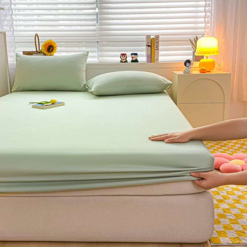 Soft Cotton Fitted Bed Sheet with Elastic Band Solid Color Mattress Cover for Single Double King Queen Bed 140/150/160/180/200