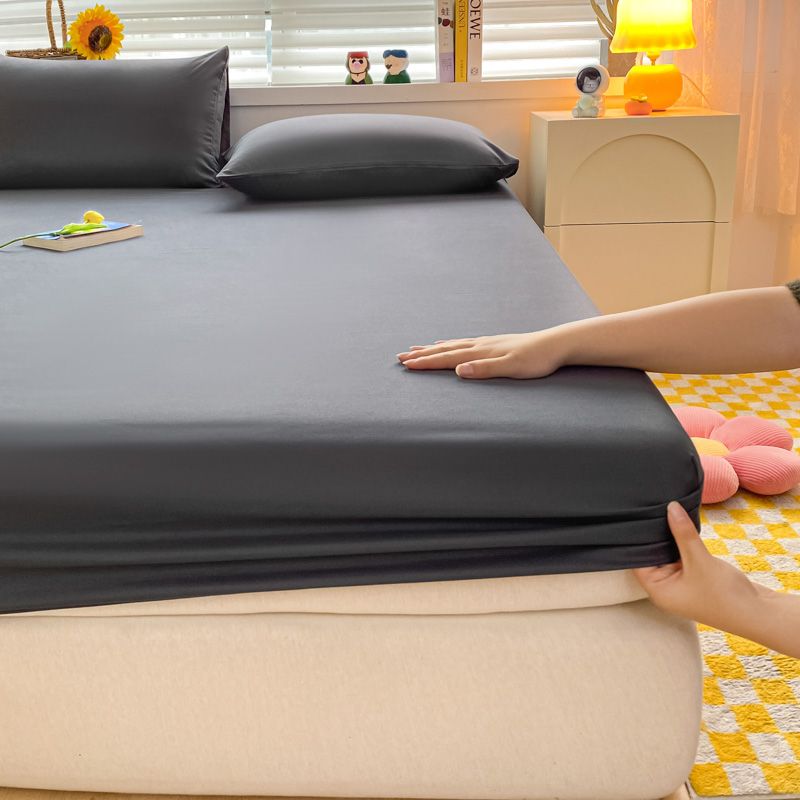 Soft Cotton Fitted Bed Sheet with Elastic Band Solid Color Mattress Cover for Single Double King Queen Bed 140/150/160/180/200