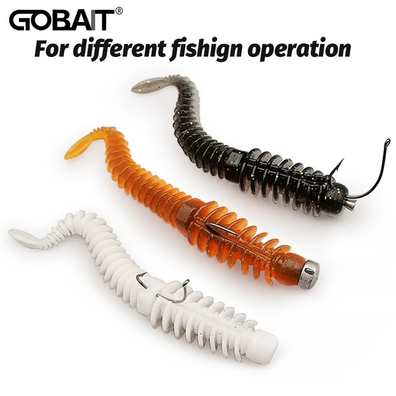 GOBAT Lures kit worm Bait 6.5cm 7.5cm 8.5cm Soft Lure DIY color 1.1g 1.8g 2.7g jig Hook Fishing Tackle wobber Pesca Elastic grub Swimbait gear Sinking lure