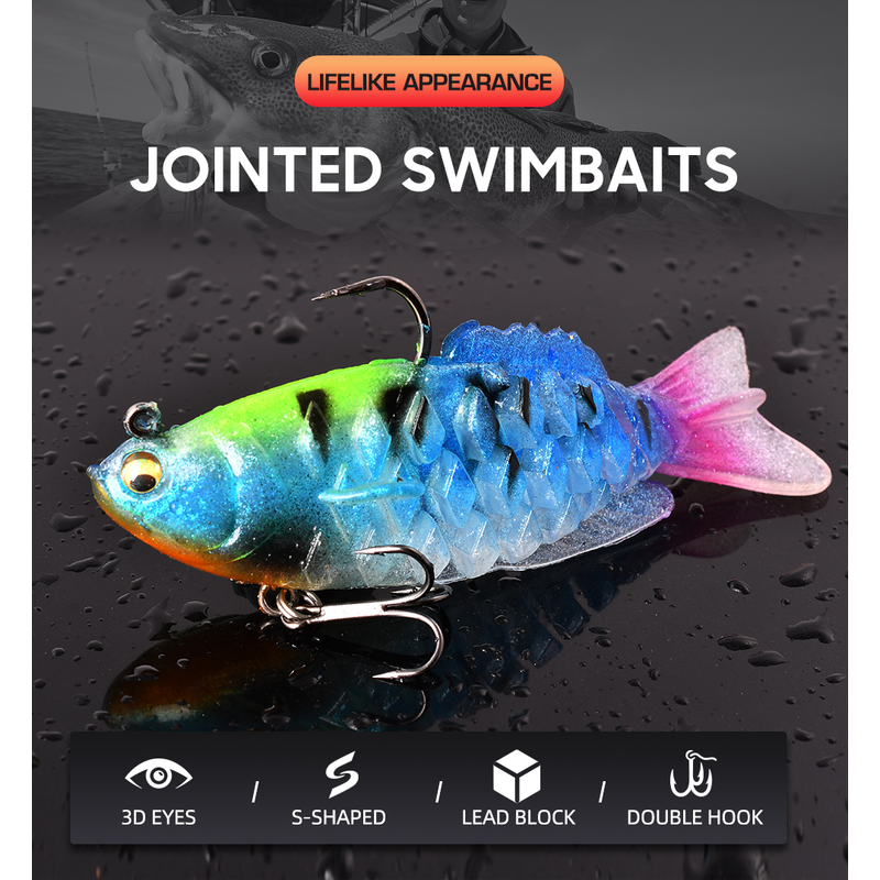 Soft Shad Bait Ultrasoft Multisection Silicone Jig Head Lure Dark Sleeper Swimbait For Bass Fishing Khaki