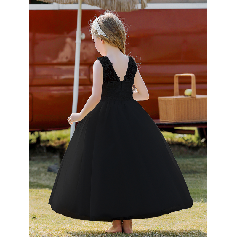 Soft Tulle Satin Floral Appliques Lace Elegant Wedding Party Princess Toddler Gown Dress