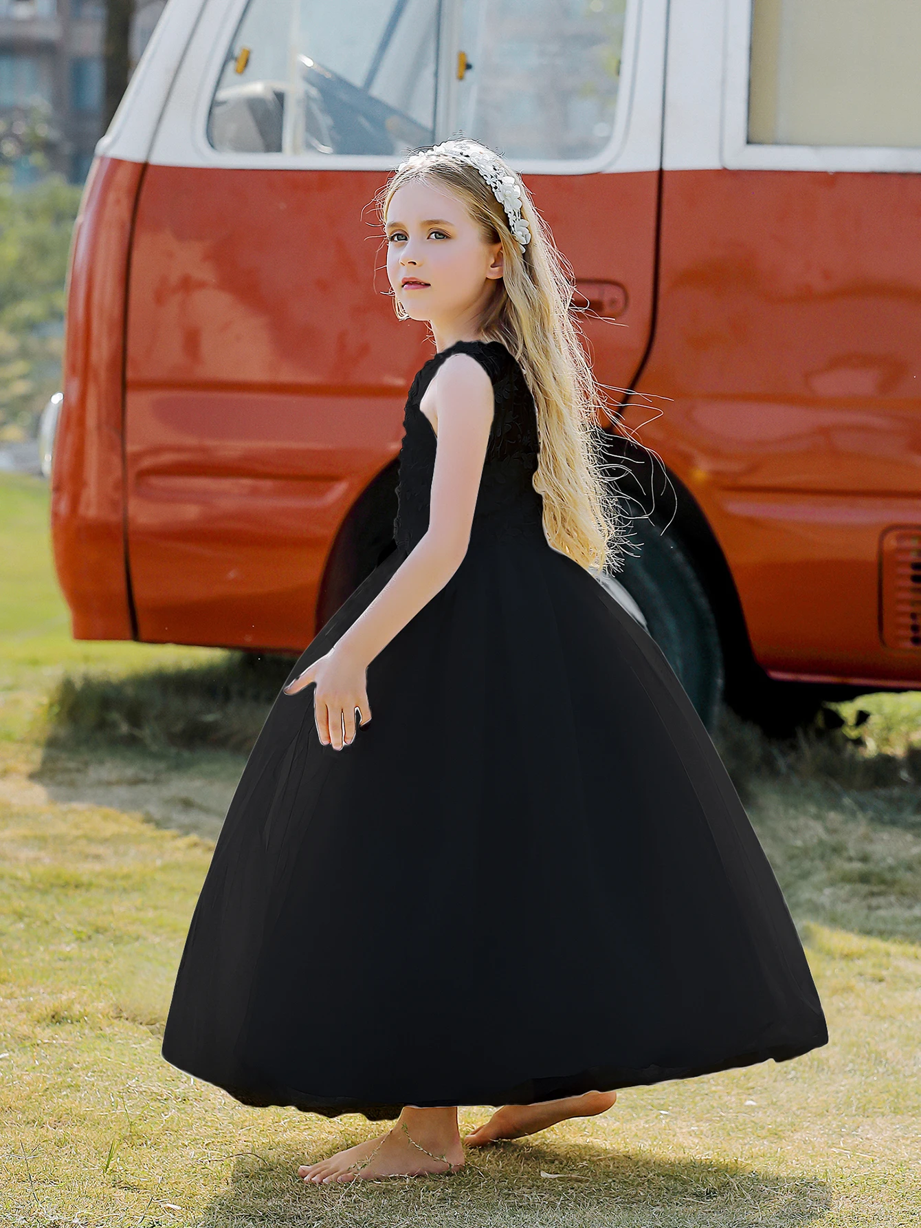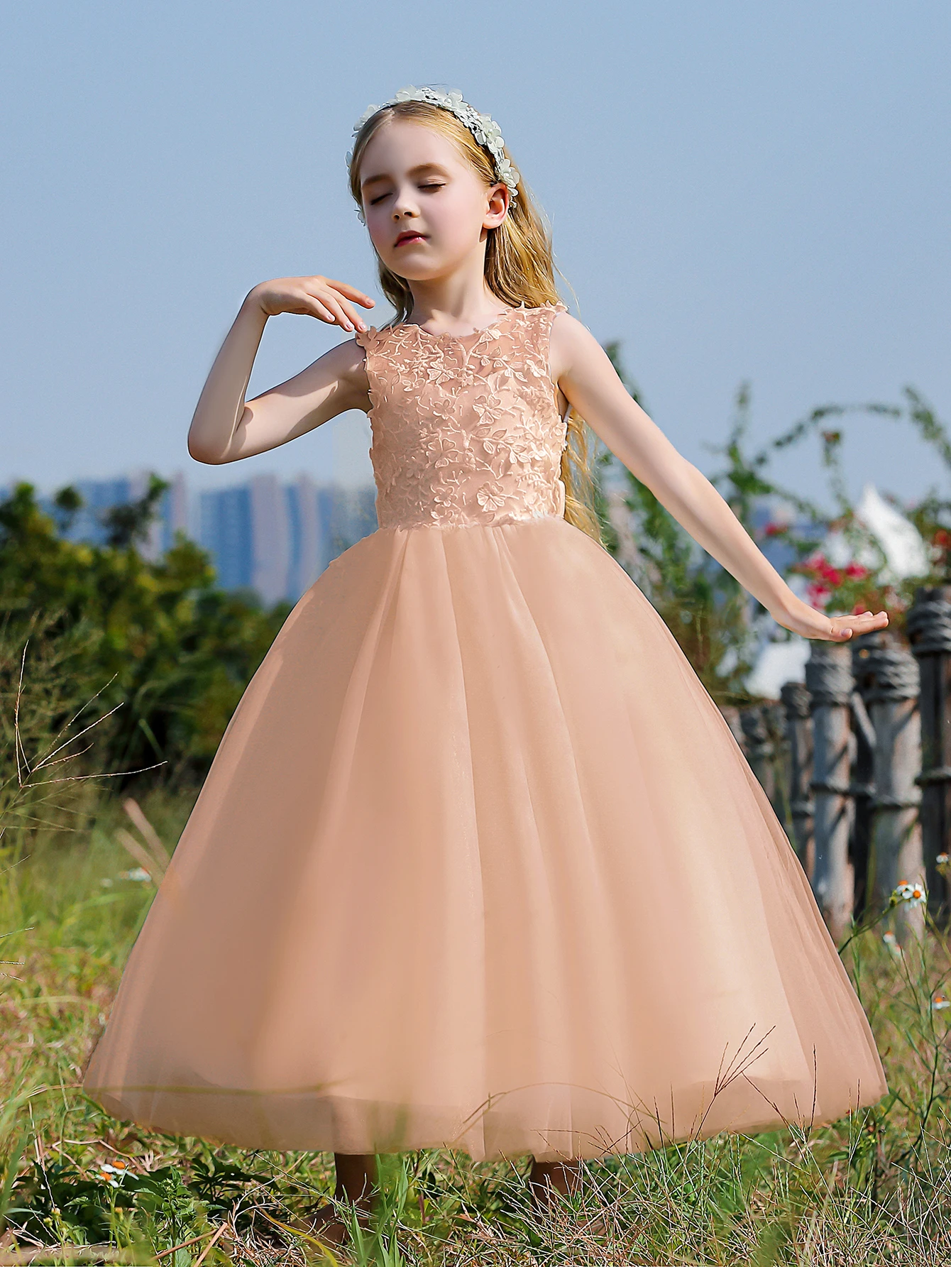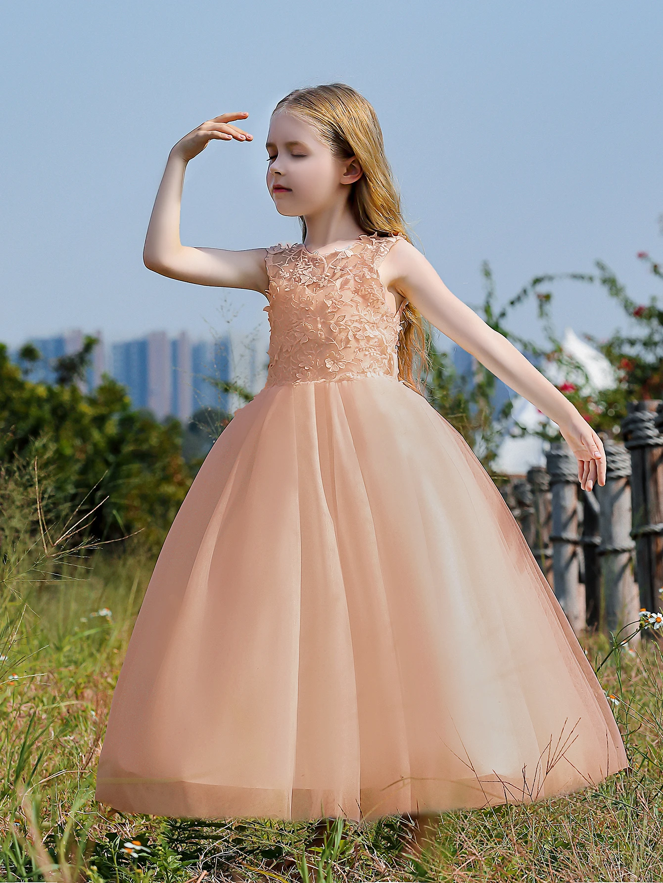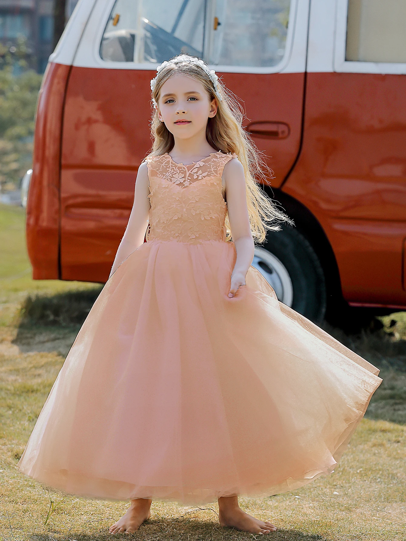 Soft Tulle Satin Floral Appliques Lace Elegant Wedding Party Princess Toddler Gown Dress