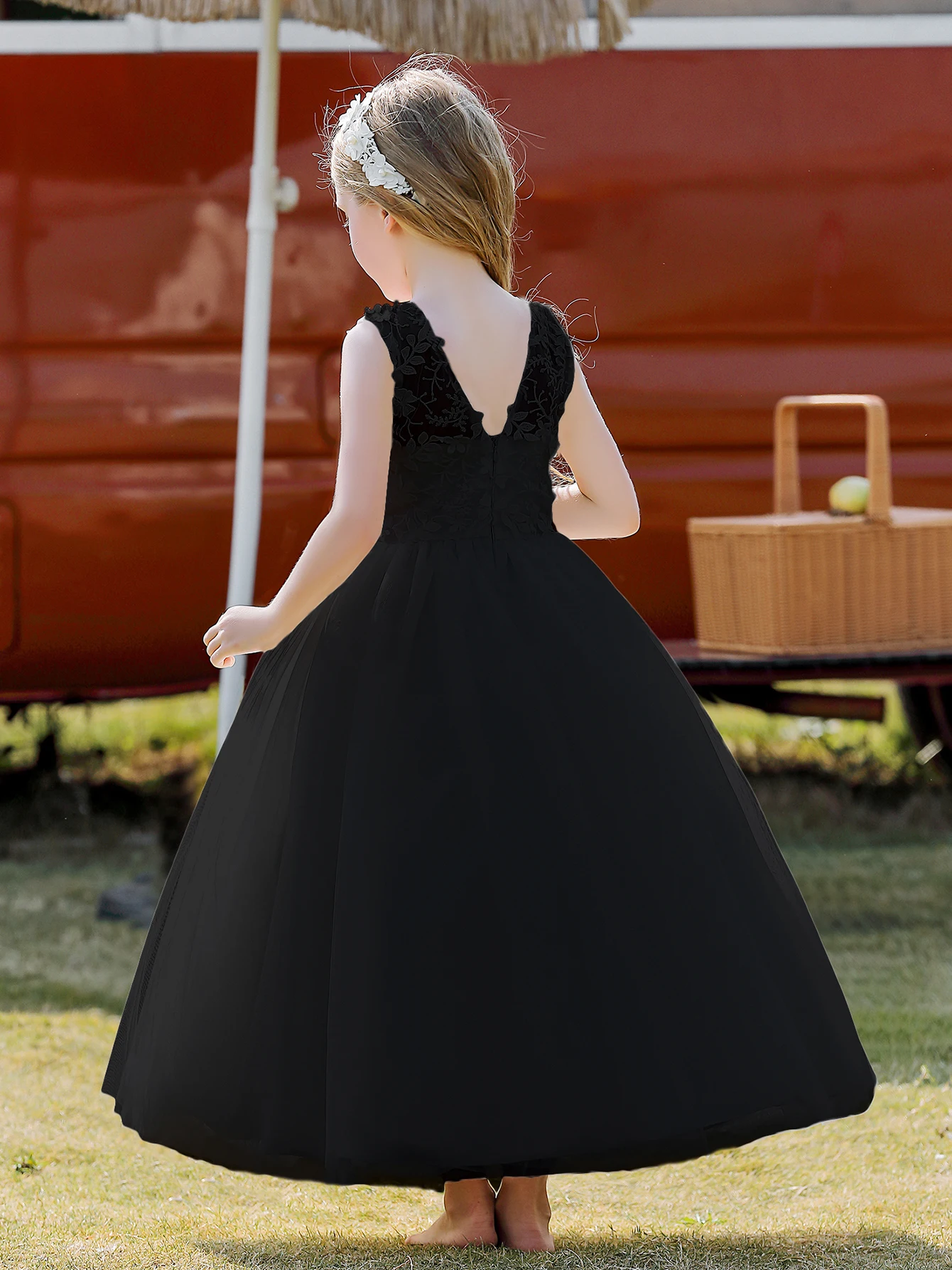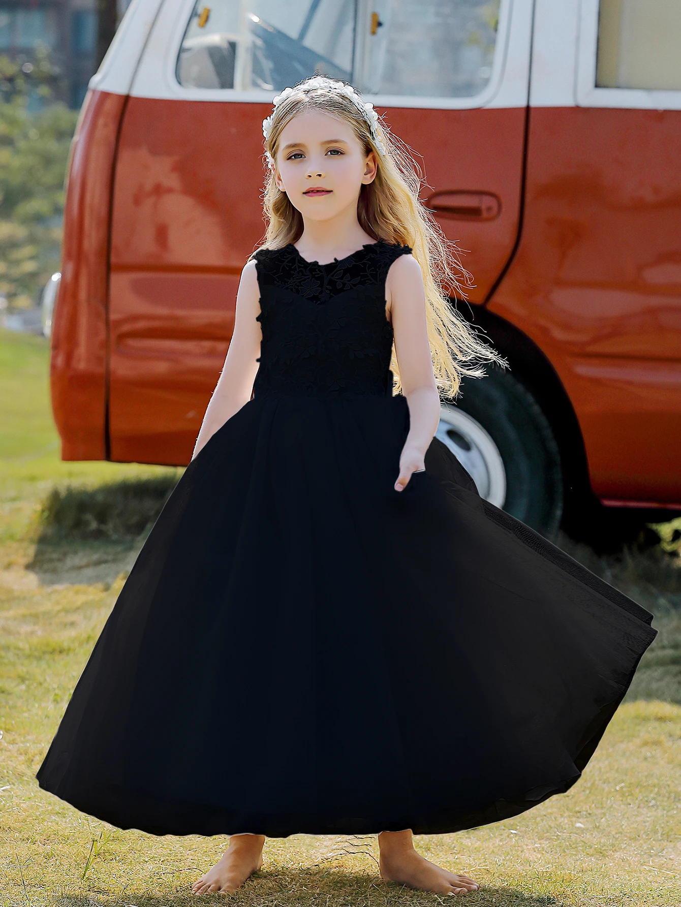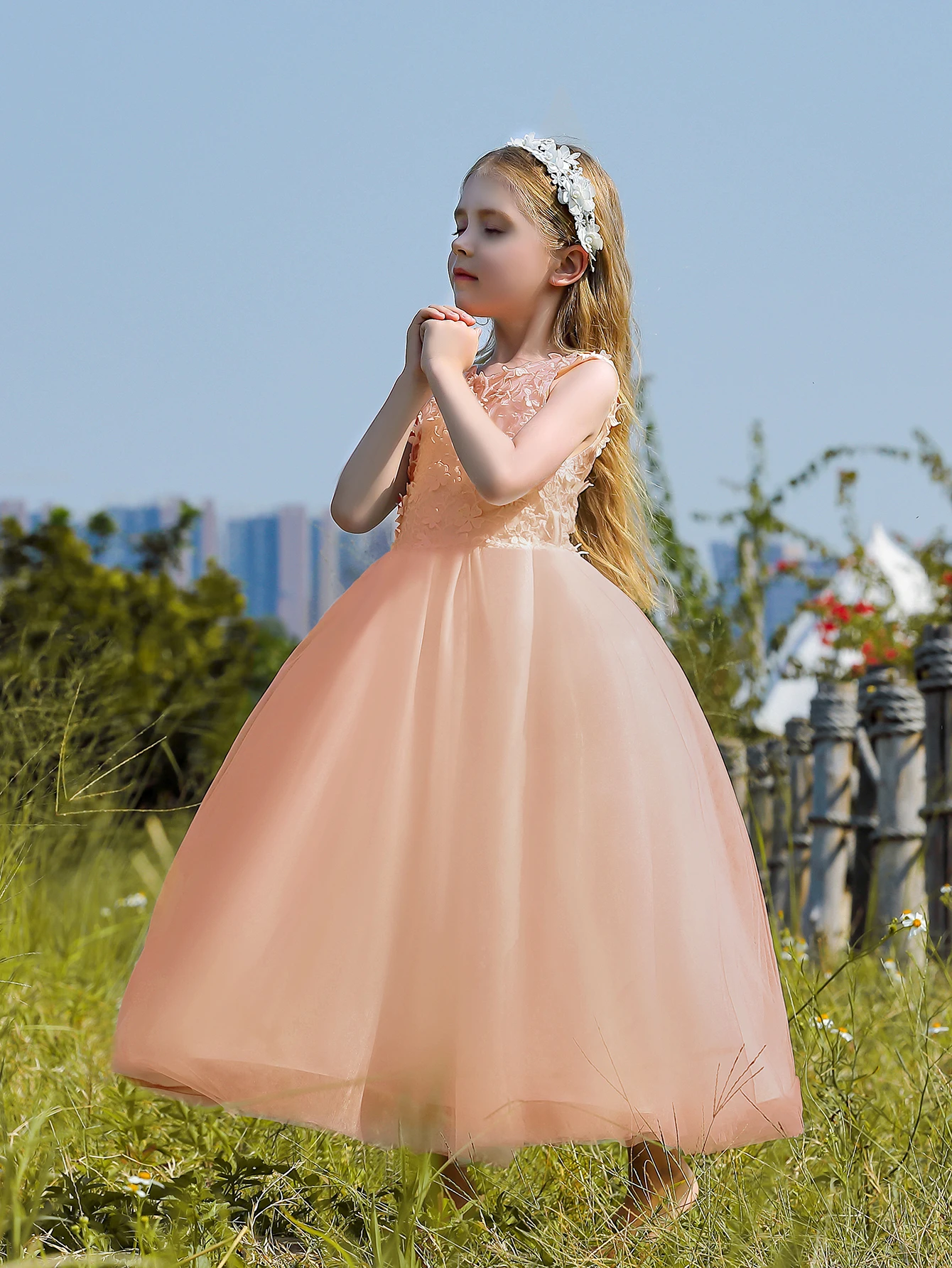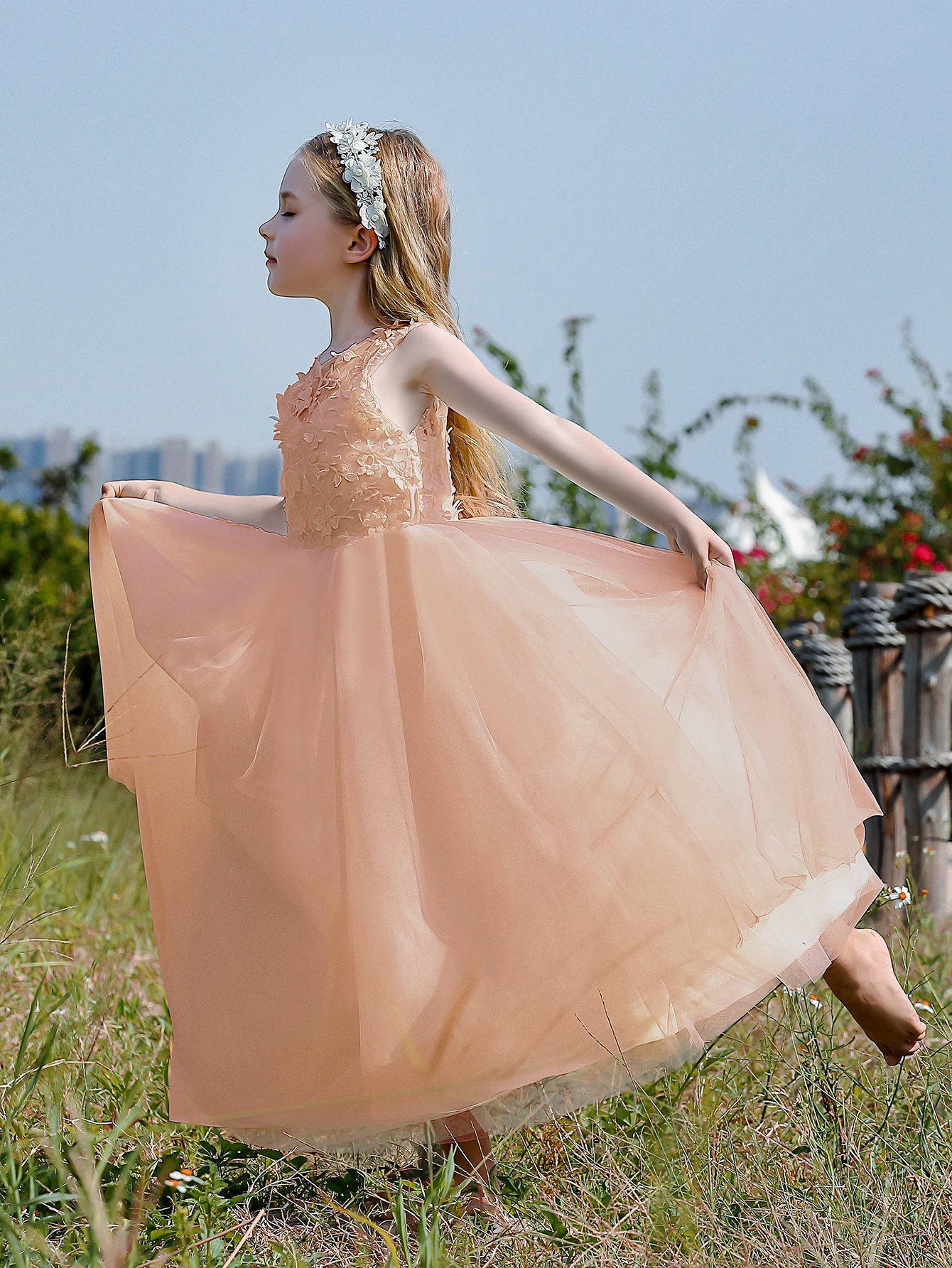 Soft Tulle Satin Floral Appliques Lace Elegant Wedding Party Princess Toddler Gown Dress