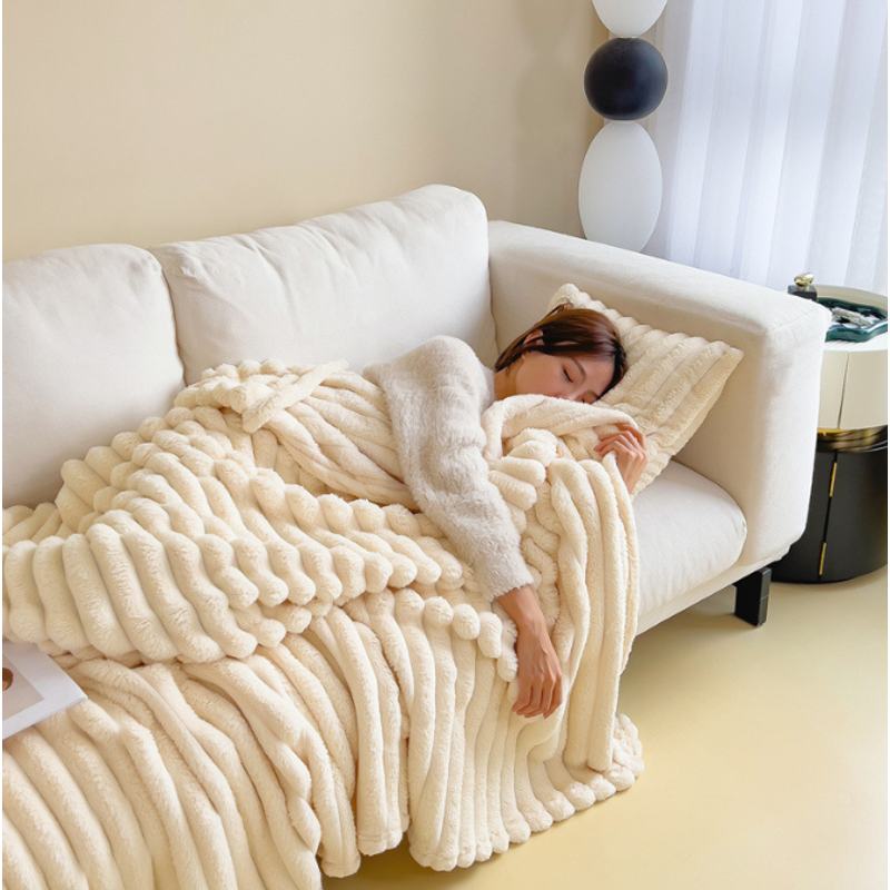 Soft Wind Bubble Velvet Blanket Warm Solid Rabbit Fur Blankets Double-sided Thickening Cover Throw Warm Fur Blanket Milky White 100x150cm
