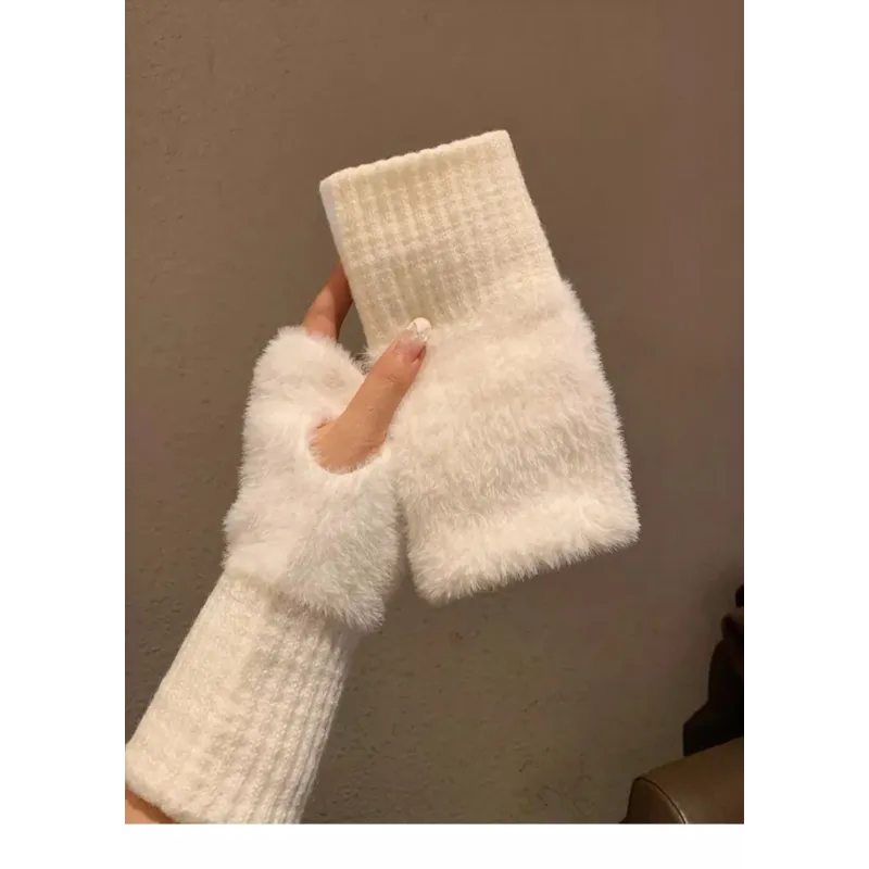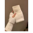 Soft Winter Half Finger Gloves Women Warm Luxury Solid White Plush Knitted Fingerless Gloves Wrist Mittens Writting