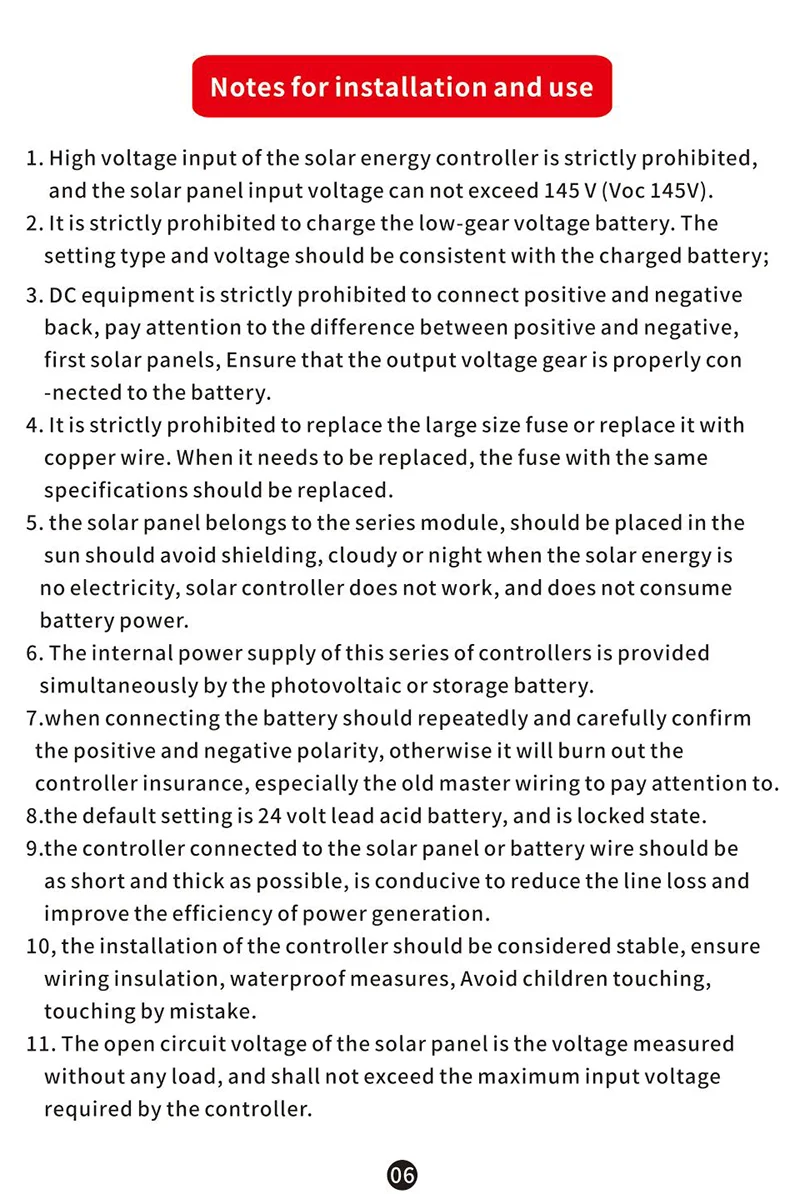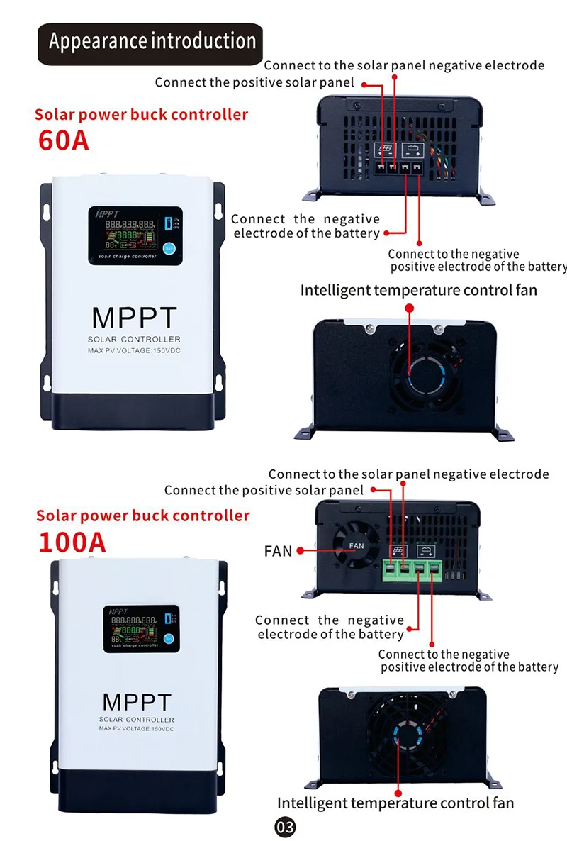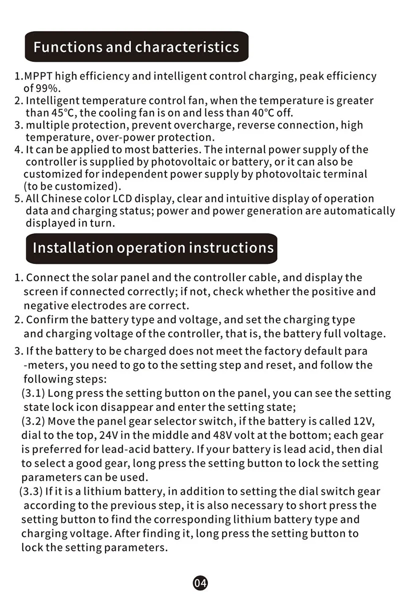 The battery charging process of the MPPT controller is optimized to extend battery life and improve system performance. Its comprehensive self-test function and electronic protection function can avoid damage caused by installation errors and system failures. Although the controller is easy to operate and use, in order to allow you to better use all the functions of the controller and improve your photovoltaic system, please read the instructions and instructions in this manual carefully.