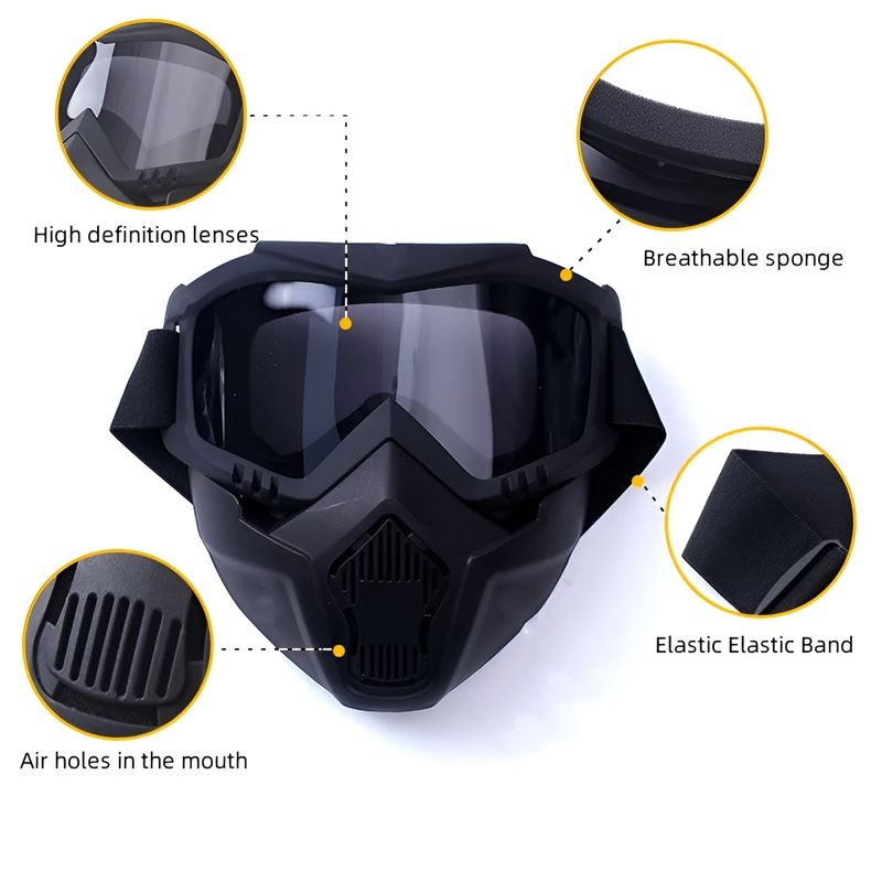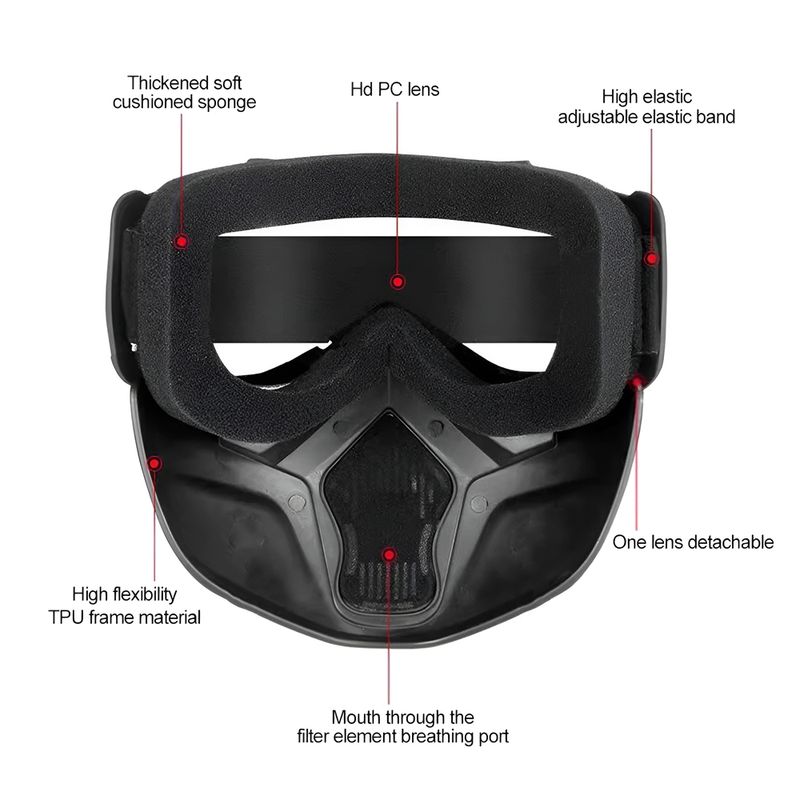 2. Detachable design, goggles and face mask can be removed according to the needs of use; The frame is made of highly elastic engineering resin material TPU