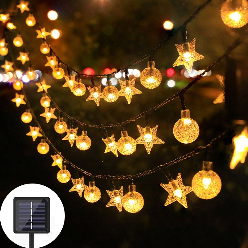 Solar LED String Lights Outdoor Camping Decor Crystal ball and stars String Lights 8 Modes Solar Lamp for Halloween Christmas