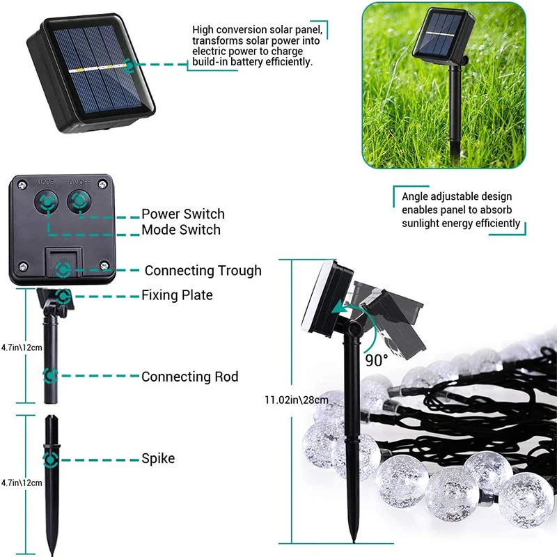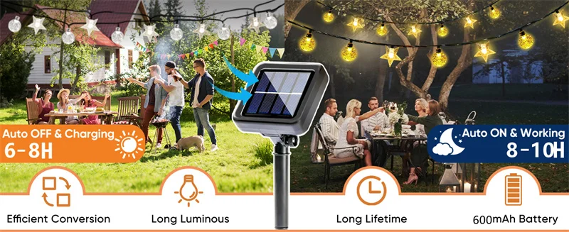 【Auto On/Off】The outdoor solar christmas lights will be auto on at dusk and auto off at dawn.