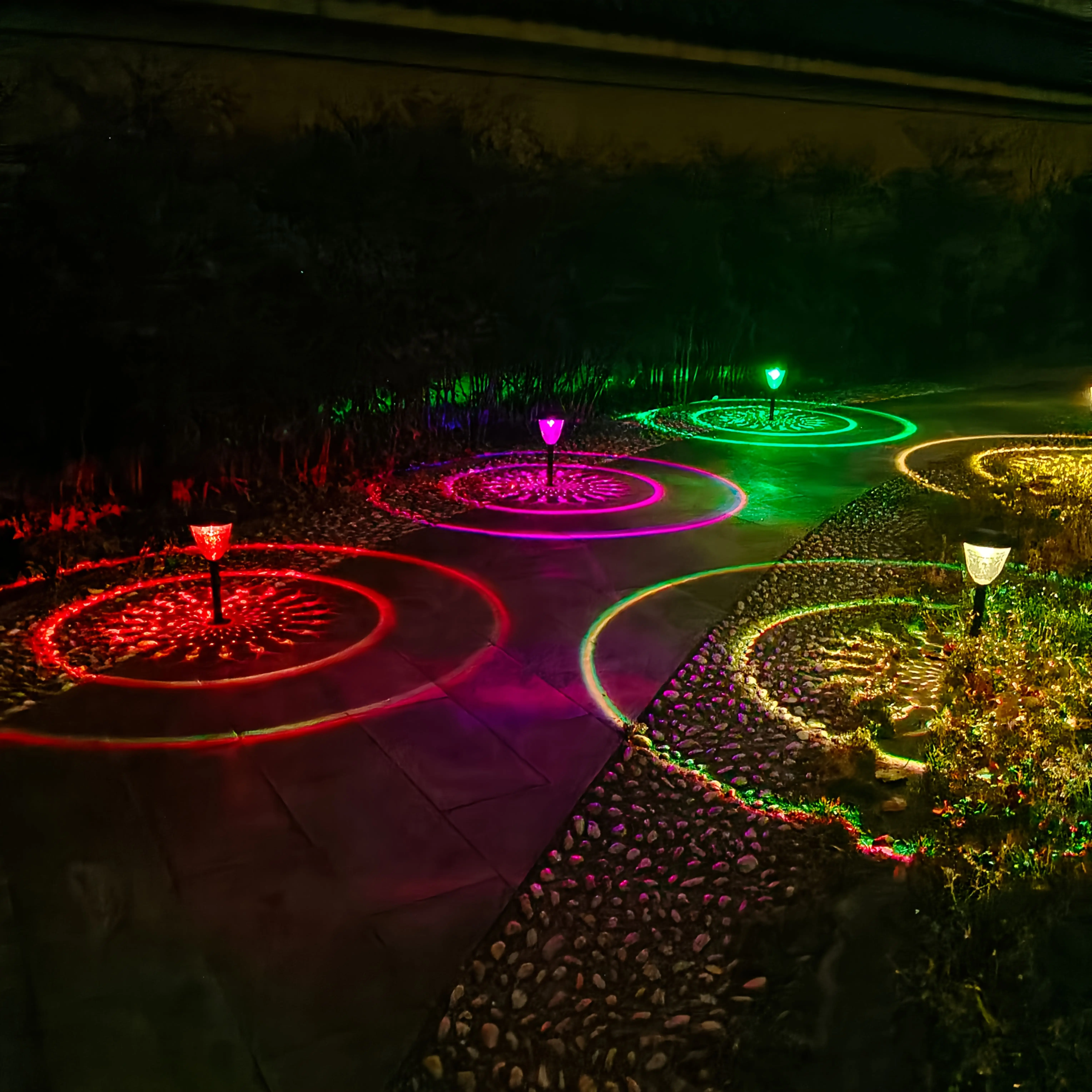 Solar Light Outdoor Waterproof Circle Shadow Lawn Solar Powered Pathway Garden Light LED Landscape Light Decorative for Walkway