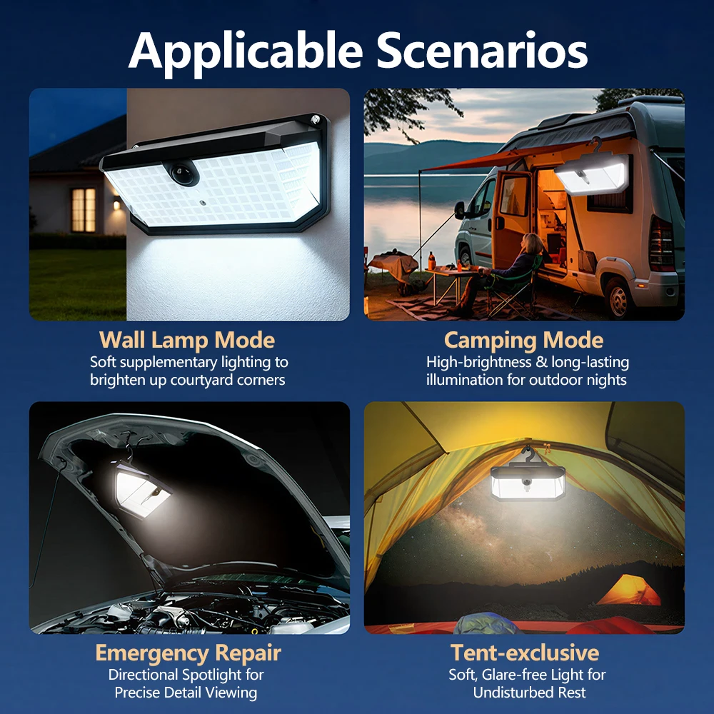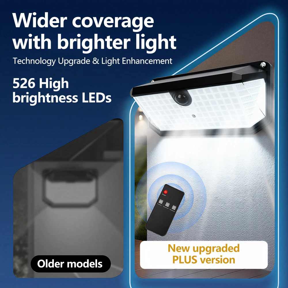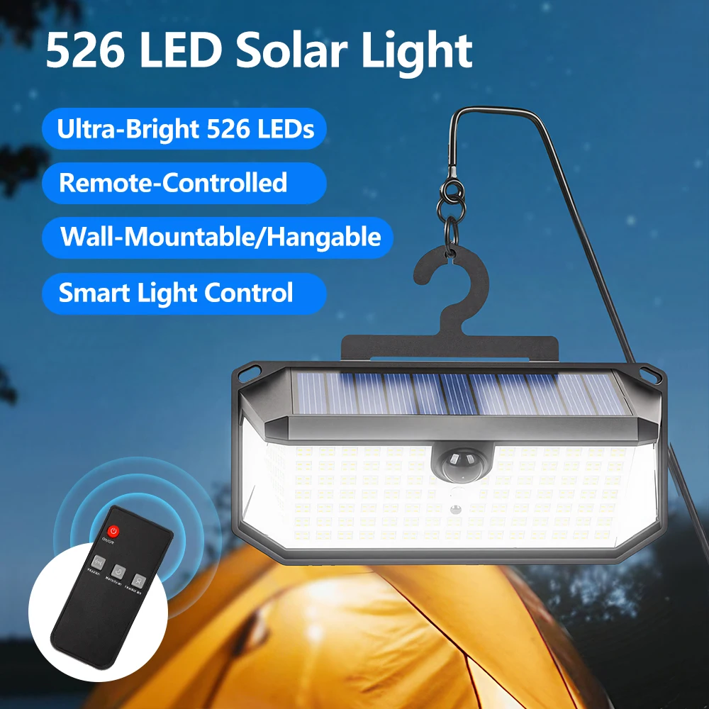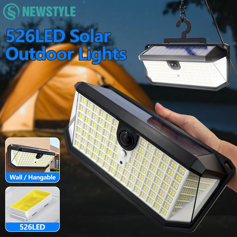 Triple-Sided Illumination & High Brightness: Equipped with 526 LEDs, this solar wall light delivers powerful, multi-directional lighting—ideal for outdoor scenarios like camping.