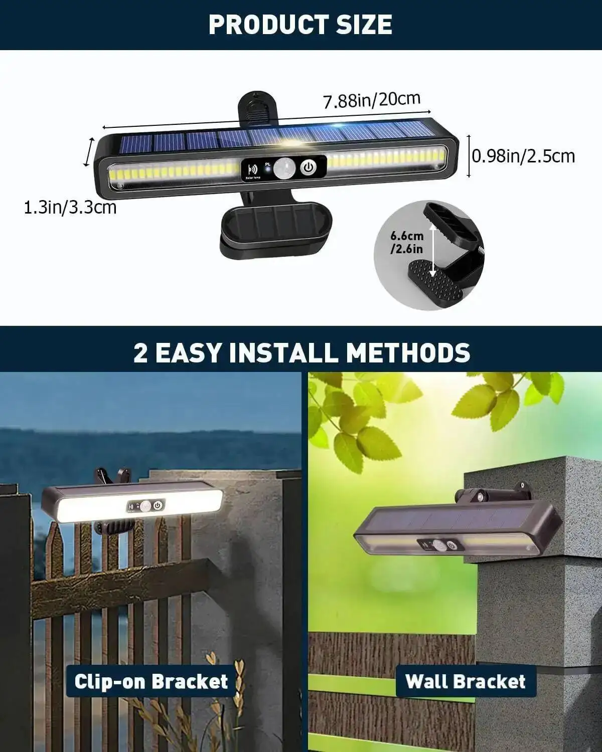 • ☀【Super Brightness】– With big and advanced 36 LEDs, this clip on solar motion sensor lights outdoor can illuminate a wide area of up to 50 square feet while providing 400 lumens of bright light. Recommend height: 4.92ft - 8.2ft.