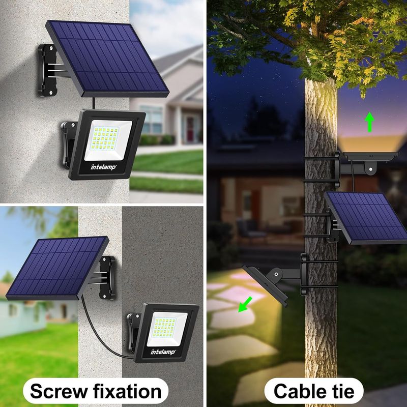 【Easy Installation】Mount to the wall or board using screws; bind to the trunk or poles using cable ties. The wires between solar panel and lamp are 16 feet, it allows to install the solar panel in the sunshine while locate the solar light outdoor wherever you desire.