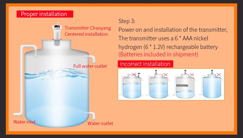Transmitter: 6 * AAA 1.2V NiMH rechargeable battery power supply (comes with solar panels can automatically charge the rechargeable battery when the sun)