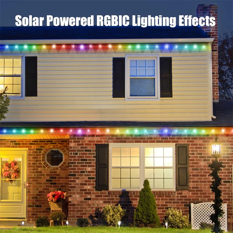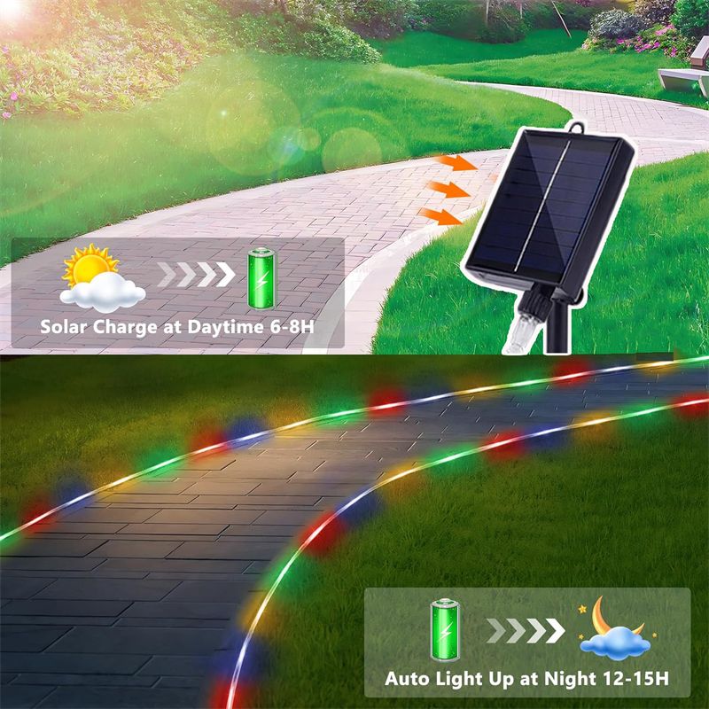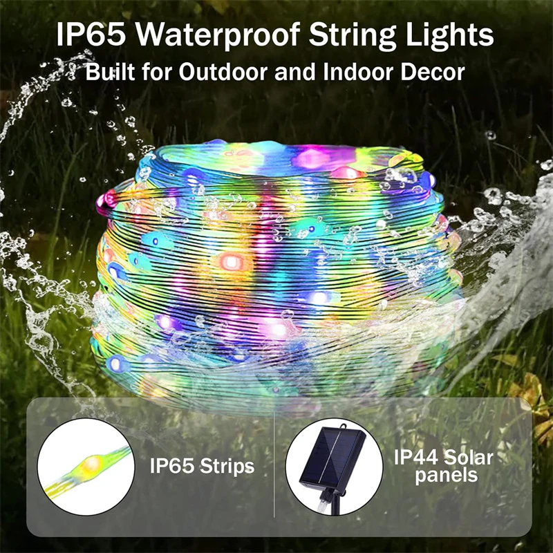 【All Weather Performance】:These IP65 waterproof Solar light strings can withstand the outdoor environment, durable and reliable, suitable for year-round use in any outdoor environment.