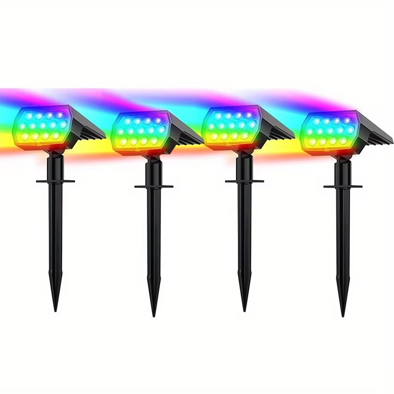 Solar Spot Lights Outdoor Color Changing 7 Modes Christmas IP65 Waterproof Landscape Spotlights Dusk To Dawn For Patio Garden