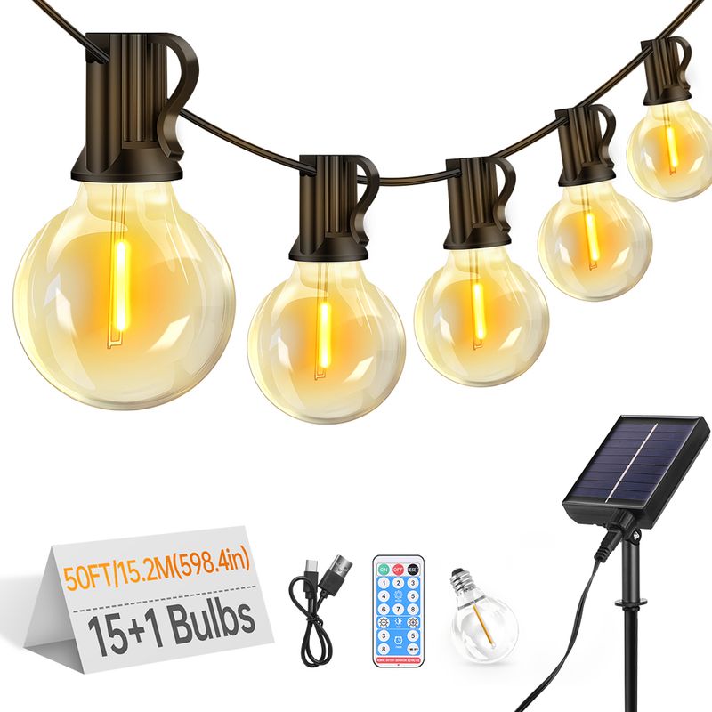 Solar String Lights Outdoor Waterproof G40 10m 30m Bulb Globe Outdoor Solar Lights With Remote For Outside Patio Backyard Garden