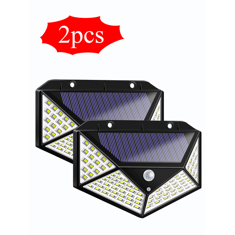 There are 100 LEDs on all sides, four sided illuminated lights, garden lights, guardrail lights, wall lights, waterproof lights, solar powered lights, and human sensing lights,