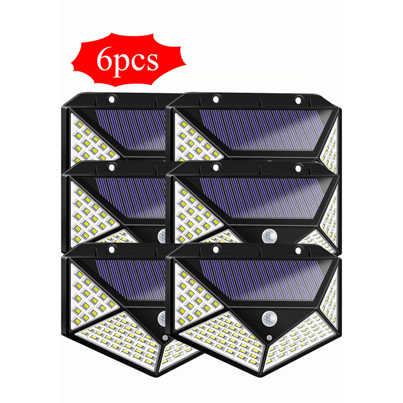 There are 100 LEDs on all sides, four sided illuminated lights, garden lights, guardrail lights, wall lights, waterproof lights, solar powered lights, and human sensing lights,