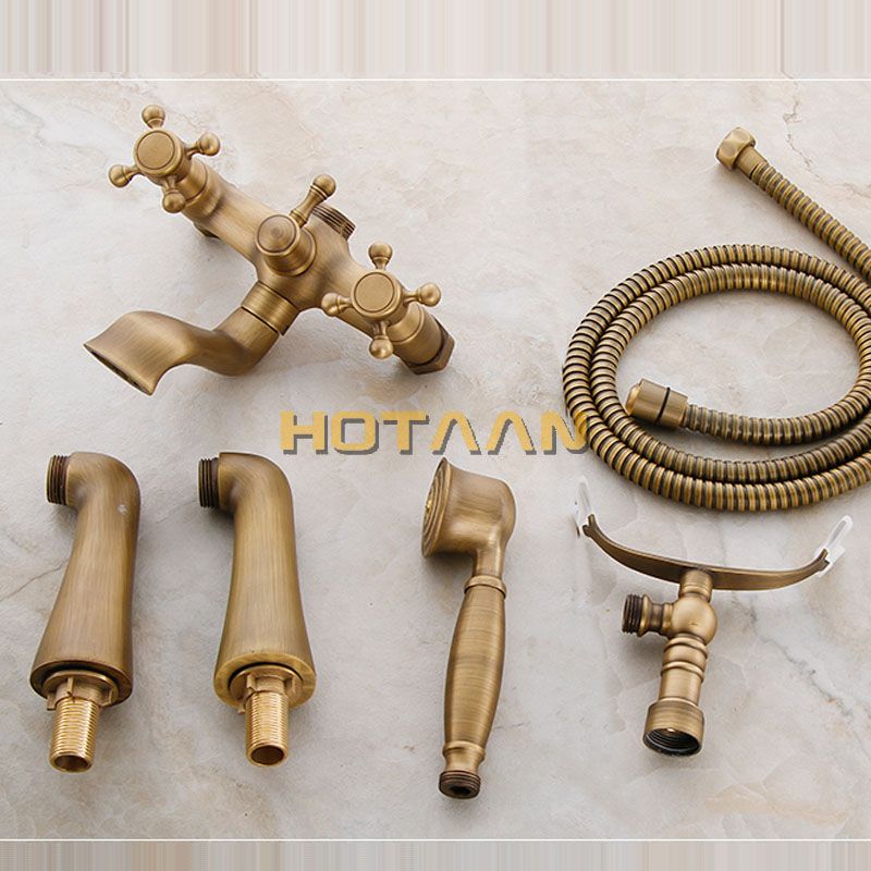 Solid Brass Made Deck Mounted Bath Tub Faucet Antique Bronze Bathtub Faucets with Hand Shower Dual Handle Mixer Crane