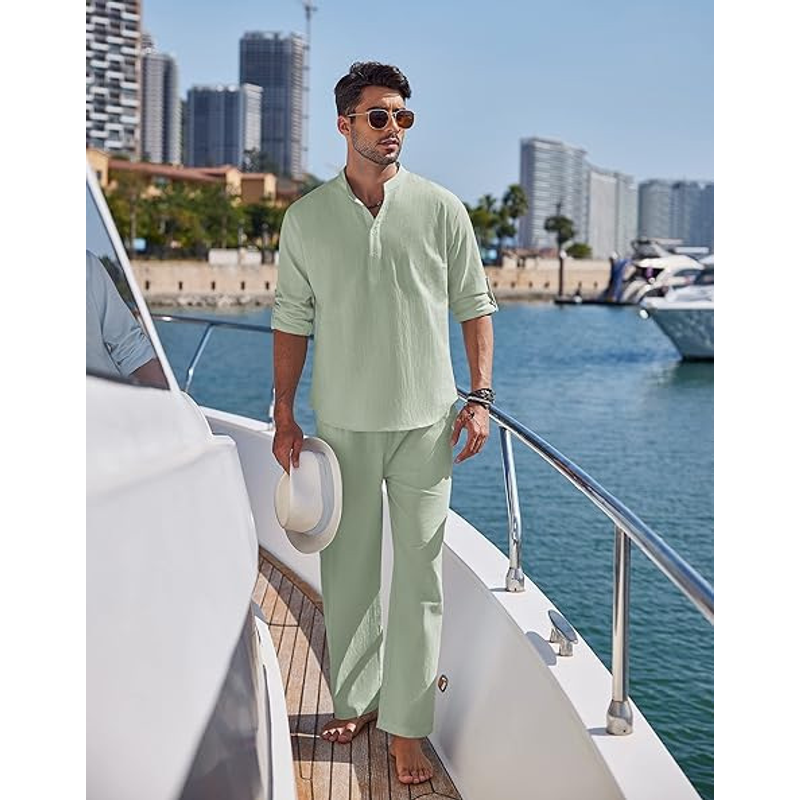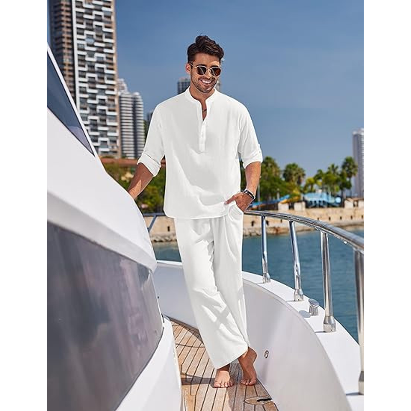 Solid Color Casual Cotton Men's Long Sleeve Trousers Suit White L