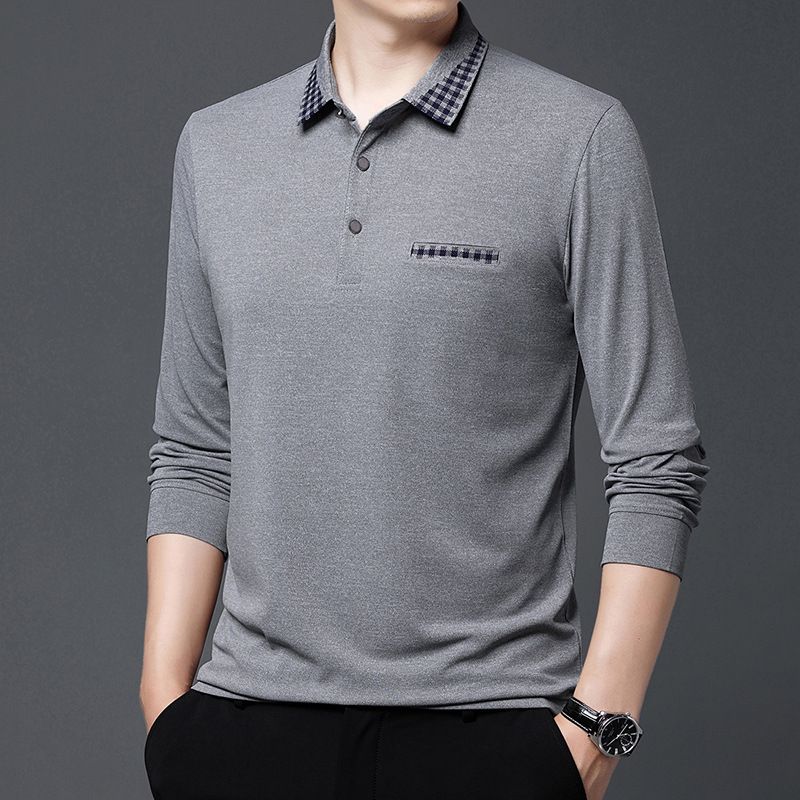 Solid Color Casual Dad Long-t-shirt Blue XL