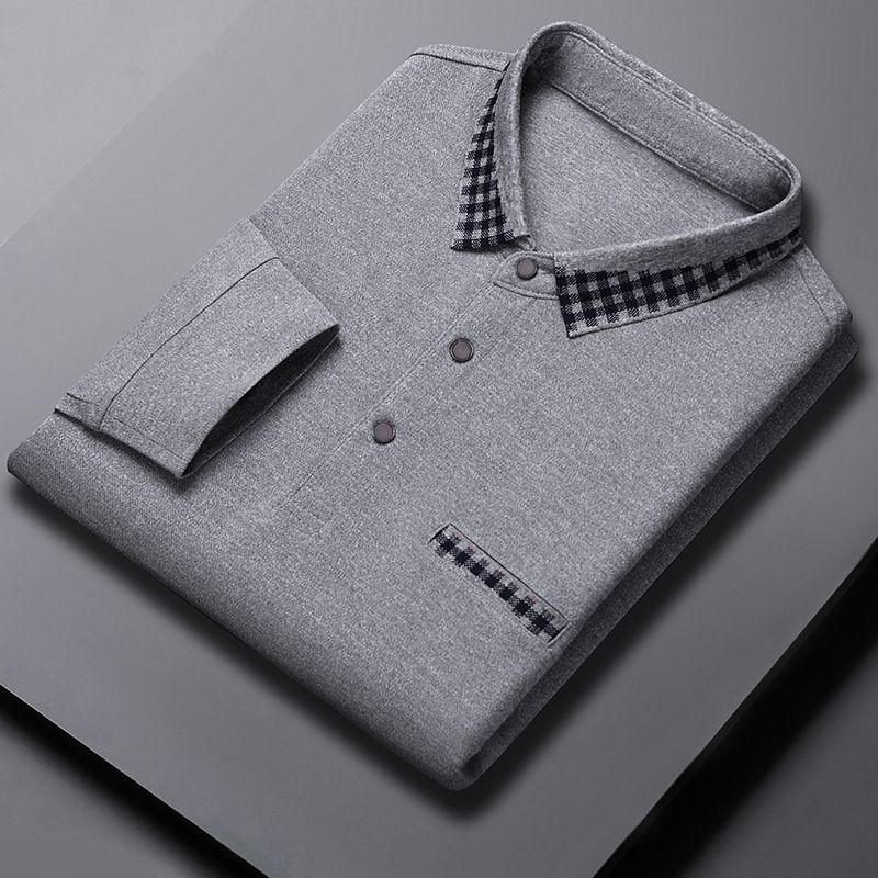Solid Color Casual Dad Long-t-shirt Gray XXXXL
