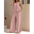 Solid Color Casual Loose Pants Sets For Women Elegant Spring Summer Women's Two Pieces Suit Full Trouser Set Female Outfit Clothes Pink S