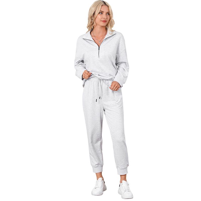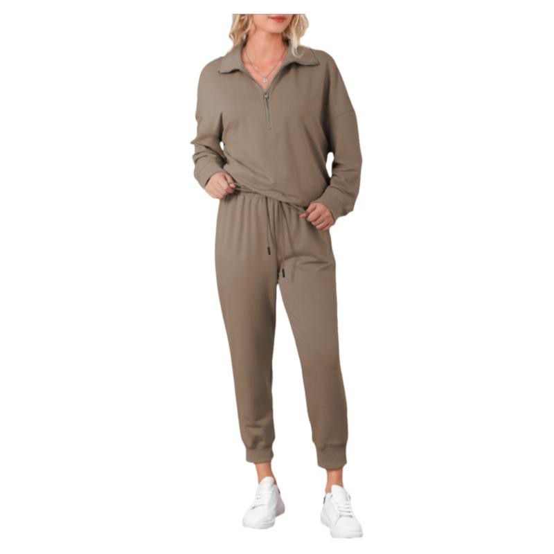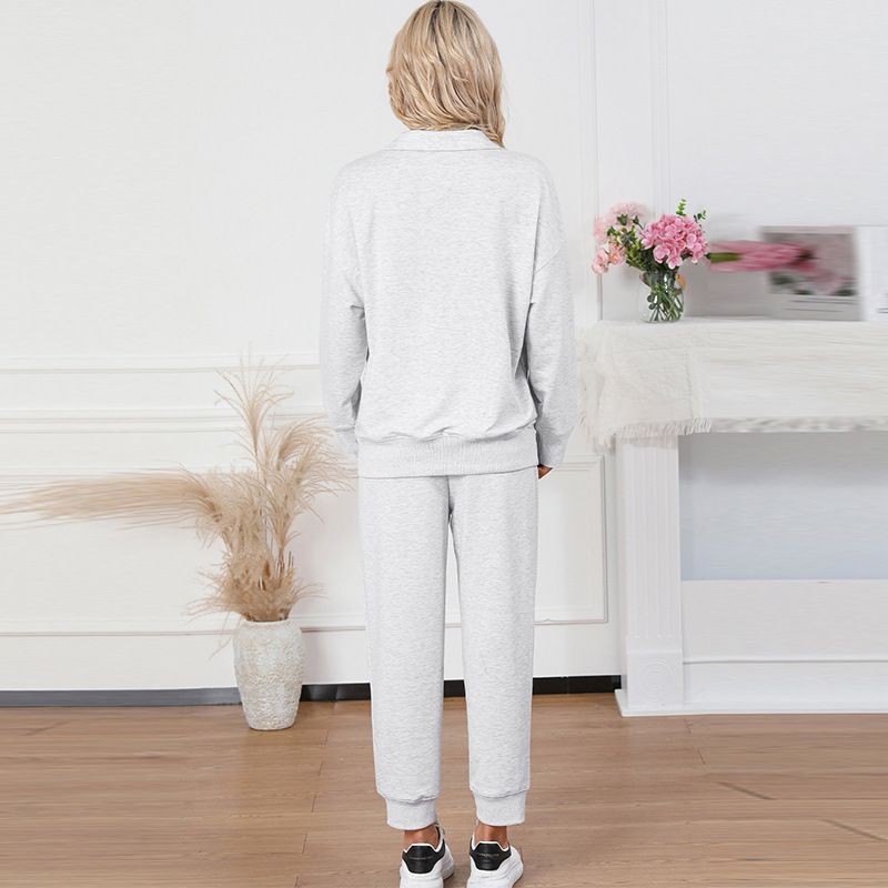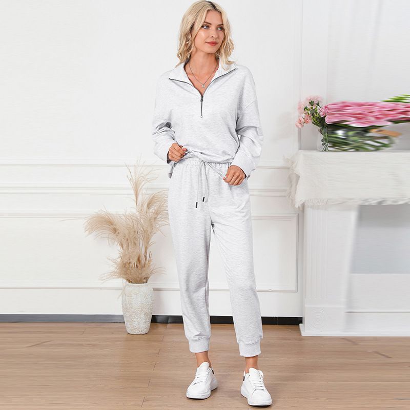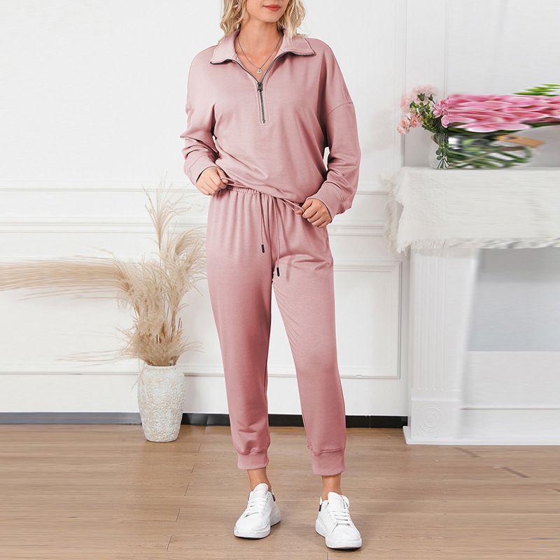 Solid Color Casual Sports Suit European And American Fashion Long Sleeve Pullover Trousers LC15649 P6017 S