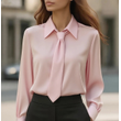 Solid Color Casual Tie Long Sleeve French Shirt Women's Shirt Pink XXL